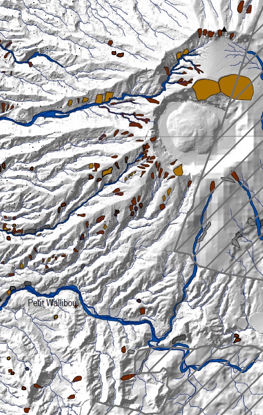 - An interpretation from the hillshading image of the digital Elevation Model, which allowed us to map many old landslides that are subsequently covered by vegetation