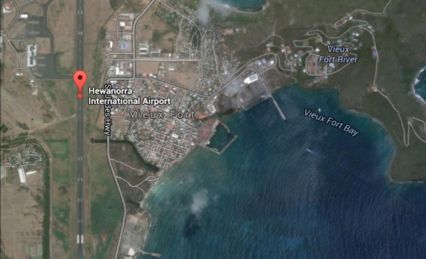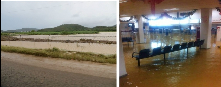 The Hewanorra International Airport terminal building, also located in Vieux Fort, was badly flooded and debris accumulated on the runway in 2013.